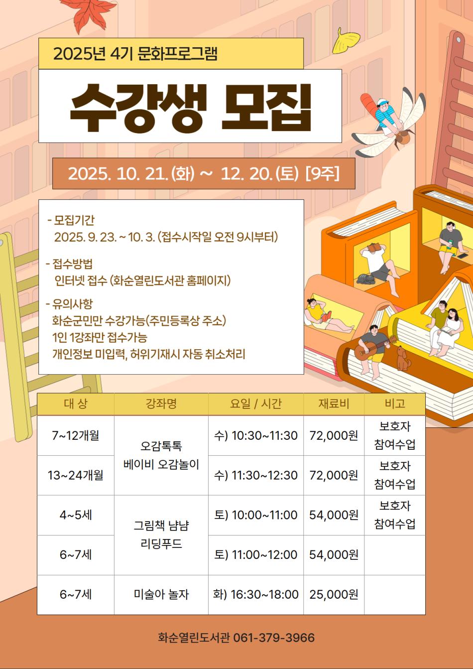 2025년 4기 문화프로그램 수강생 모집(오전 9시부터~)